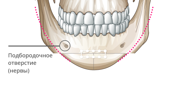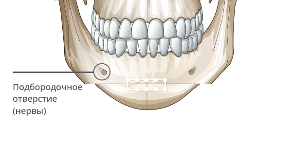 Используйте Т- остеотомию на краю подбородка, избегая нервных линий.