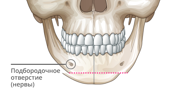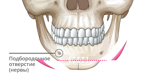 Используйте остеотомию на краю подбородка, избегая нервных линий.