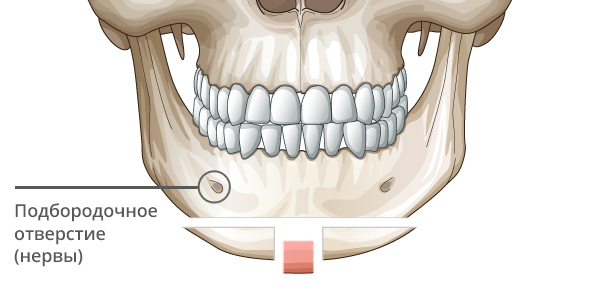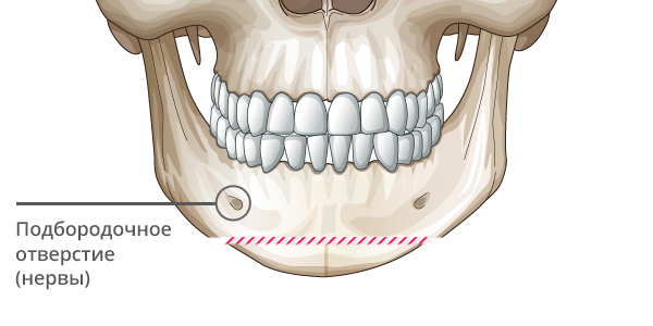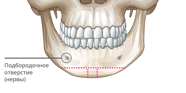 Используйте Т-остеотомию на краю подбородка, избегая нервных линий.