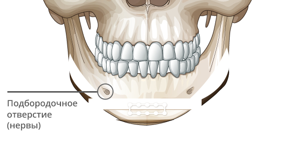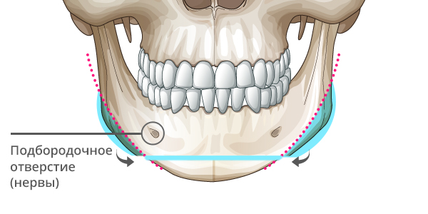 Выдвинутая часть кости с обеих сторон режется и обрезается, и вставлена в подбородок.
